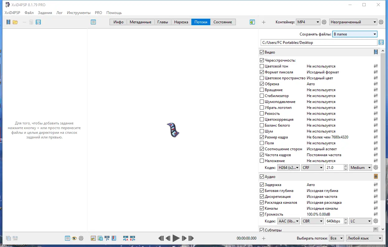 Программа XviD4PSP — универсальный инструмент для пакетного преобразования мультимедийных файлов, который работает практически со всеми распространёнными форматами, такими как AVI, MP4, MKV, MOV, FLV и многие другие. Основной её особенностью является независимость от системных компонентов и наличие встроенных пресетов для быстрой конвертации на мобильные устройства и медиа-плееры. Подходит для пользователей, требующих быстро и качественно обрабатывать медиафайлы без лишних сложностей. В свежих версиях реализованы новые технологии обработки видеоданных, поддержка HDR, аппаратное кодирование и расширенные настройки потоков и кодеков.