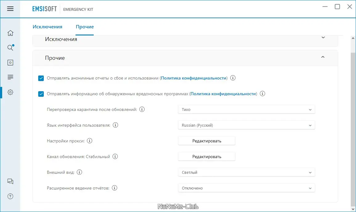 - Интеллектуальная оценка файлов через облачную систему Emsisoft Anti-Malware Network, что снижает количество ложных срабатываний.