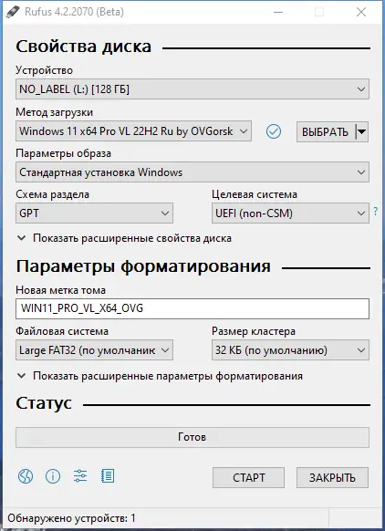 Обладая простым и понятным интерфейсом, утилита обеспечивает быструю и надежную работу при подготовке загрузочных носителей. Она подходит для различных операционных систем и поддерживает современные стандарты UEFI/GPT, что делает её универсальным инструментом.