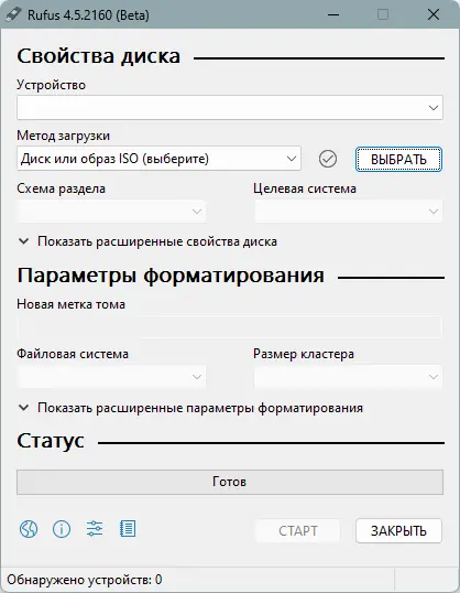 Rufus — это небольшая, портативная утилита, предназначенная для форматирования и создания загрузочных USB флэш-накопителей. Благодаря высокой скорости работы, она позволяет значительно сократить время подготовки установочных носителей, в том числе для Windows 7, 8/8.1, 10, 11, а также Linux-дистрибутивов. Rufus поддерживает работу с ISO-образами различных форматов и обеспечивает создание носителей в режимах UEFI/GPT и BIOS/MBR. В результате пользователь получает универсальное решение для установки операционных систем и микропрограмм, а также запуска низкоуровневых утилит.