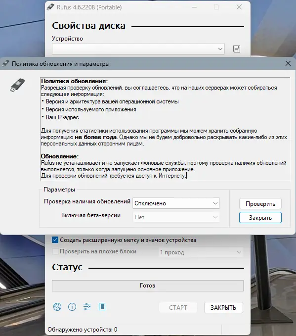 Создайте загрузочный USB-носитель быстро и без особых усилий. Rufus — это компактная портативная утилита, которая помогает отформатировать и подготовить флешки для установки операционных систем и микропрограмм, не требуя инсталляции на компьютер. Поддержка современных технологий позволяет создавать загрузочные носители в режиме UEFI/GPT, что важно для работы с Windows 7, 8/8.1, 10 и 11.