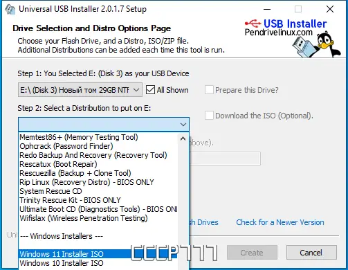 Universal USB Installer — это портативная утилита, предназначенная для создания загрузочных USB-накопителей с операционными системами Windows и Linux, а также с различными загрузочными и антивирусными образами. Программа поддерживает запись образов Windows 7, 8/8.1, 10, 11, а также популярных дистрибутивов Linux, таких как Ubuntu, Linux Mint, Fedora, Debian, CentOS, OpenSUSE, Puppy Linux и десятки других. Благодаря использованию специальных конфигураций для каждого образа, утилита обеспечивает их корректную загрузку и работу с USB-устройствами.