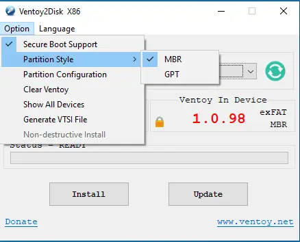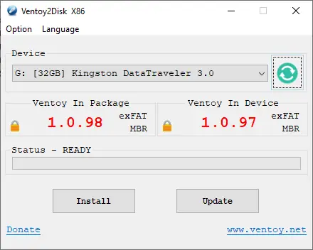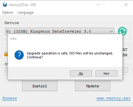 - Скачать последнюю версию Ventoy с официального сайта или репозитория.