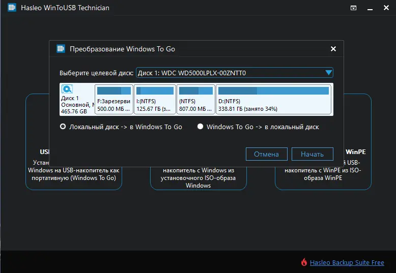 - Создание портативной Windows из ISO, WIM, VHD, VHDX или образов CD/DVD.