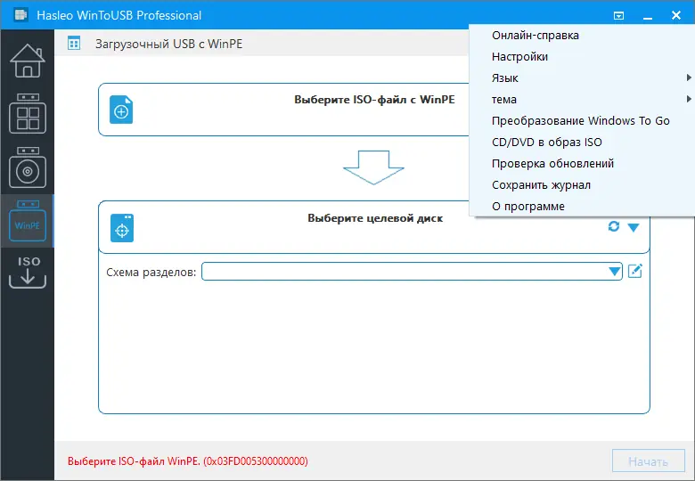 - Создание портативной Windows из ISO, WIM, VHD, VHDX или CD/DVD-привода.