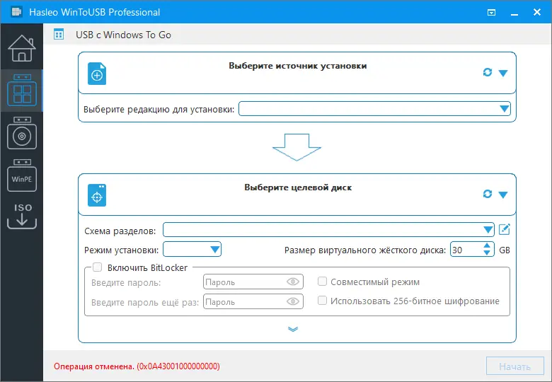 - Поддержка широкого спектра источников: ISO, WIM, VHD, CD/DVD.
