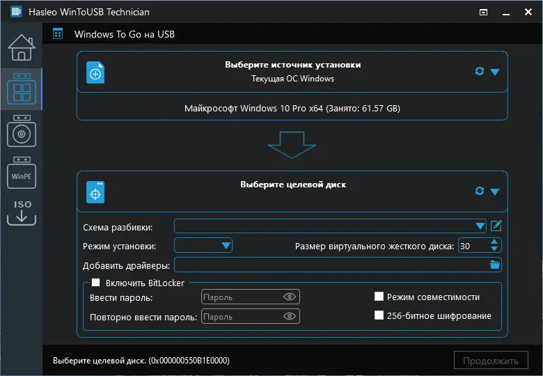 Для корректной работы WinToUSB рекомендуется следующая конфигурация: