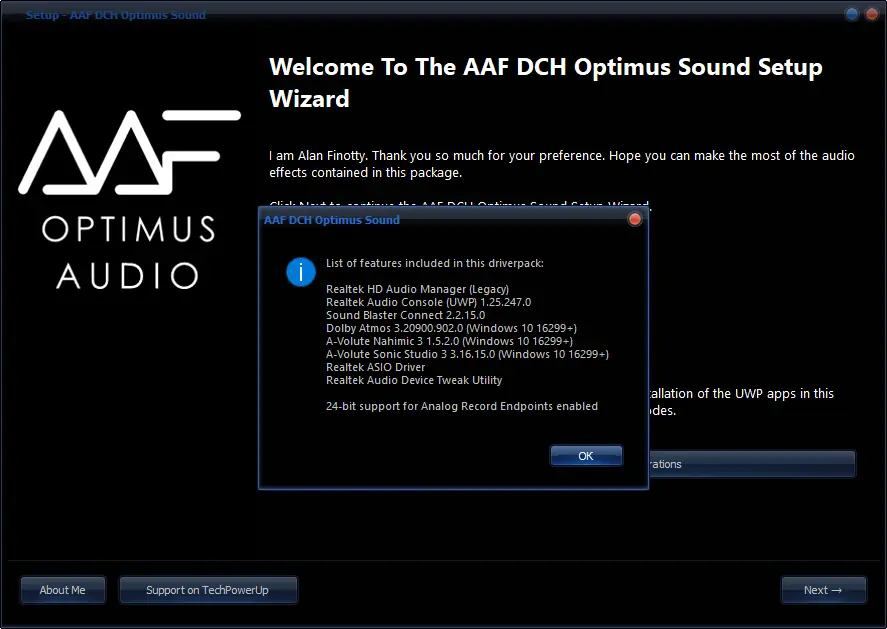 Данное программное обеспечение представляет собой мод-пакет AAF DCH Optimus Sound, основанный на аудио драйвере Realtek DCH. Он предназначен только для материнских плат с аудиочипом Realtek и обеспечивает превосходное качество звука для музыки, фильмов и игр. В процессе установки предоставляется выбор компонентов, таких как Realtek Audio Console, Sound Blaster Connect, Nahimic, Sonic Studio и Dolby Atmos, что позволяет настроить звук под индивидуальные предпочтения.