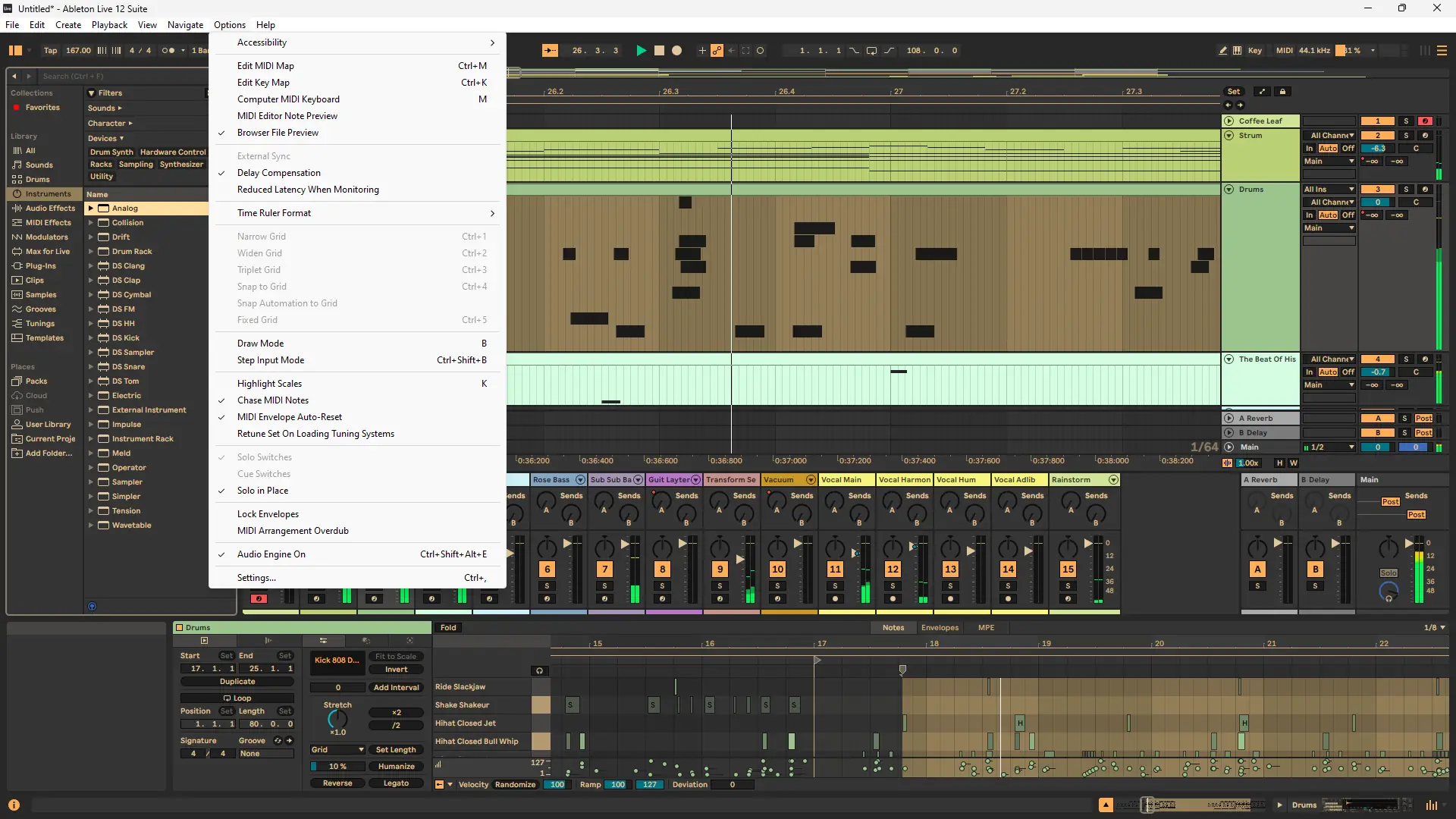 Ableton Live позволяет вам легко создавать, производить и исполнять музыку в одном интуитивно понятном интерфейсе. Она синхронизирует все процессы в режиме реального времени, что дает возможность воспроизводить и изменять музыкальные идеи без перерывов. Важной особенностью является революционный Session View — блокнот для импровизации, игры и исполнения, позволяющий свободно запускать и останавливать аудио- и MIDI-петли, сохраняя их синхронность. В программе практически всё работает в режиме реального времени, что упрощает изменение порядка треков, маршрутизации устройств и добавление новых элементов без остановки процесса. Встроенные инструменты и устройства позволяют создавать более смелые звуки, а обновления рабочего процесса и расширенные возможности нового контроллера Push помогают оставаться в потоке. Библиотека и Max for Live дают неограниченные возможности для творчества и профессиональной реализации звуковых идей.
