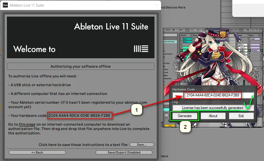 - Запустить Ableton_KeyGen.exe, вставить скопированный код, нажать «GENERATE» и сохранить полученный файл.
