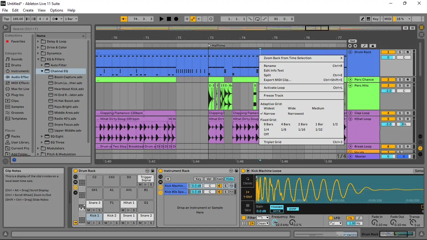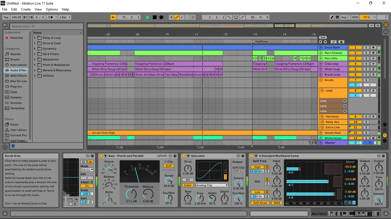 Спустя почти три года после выпуска десятой версии, разработчики представили существенное обновление — Ableton Live 11, которое значительно расширило функциональность. В обновленной версии появилось множество новых устройств и функций, направленных на улучшение процесса записи, исполнения и экспериментов. Среди нововведений — расширенная функция Comping для объединения дублей, поддержка стандарта MIDI Polyphonic Expression (MPE), появление новых устройств, таких как Hybrid Reverb и Spectral Time, а также инструменты Inspired By Nature — коллекция эффектов, вдохновлённых природными явлениями. Особое внимание уделено сценическому использованию — функция Live Tempo Following автоматически подстраивает темп под живое выступление, а Macro Snapshots позволяют сохранять конфигурации макросов для быстрого вызова. Улучшены системы автоматизации, добавлены новые функции для вариаций, такие как Note Chance и Velocity Chance, что помогает создавать более живые и непредсказуемые музыкальные паттерны.
