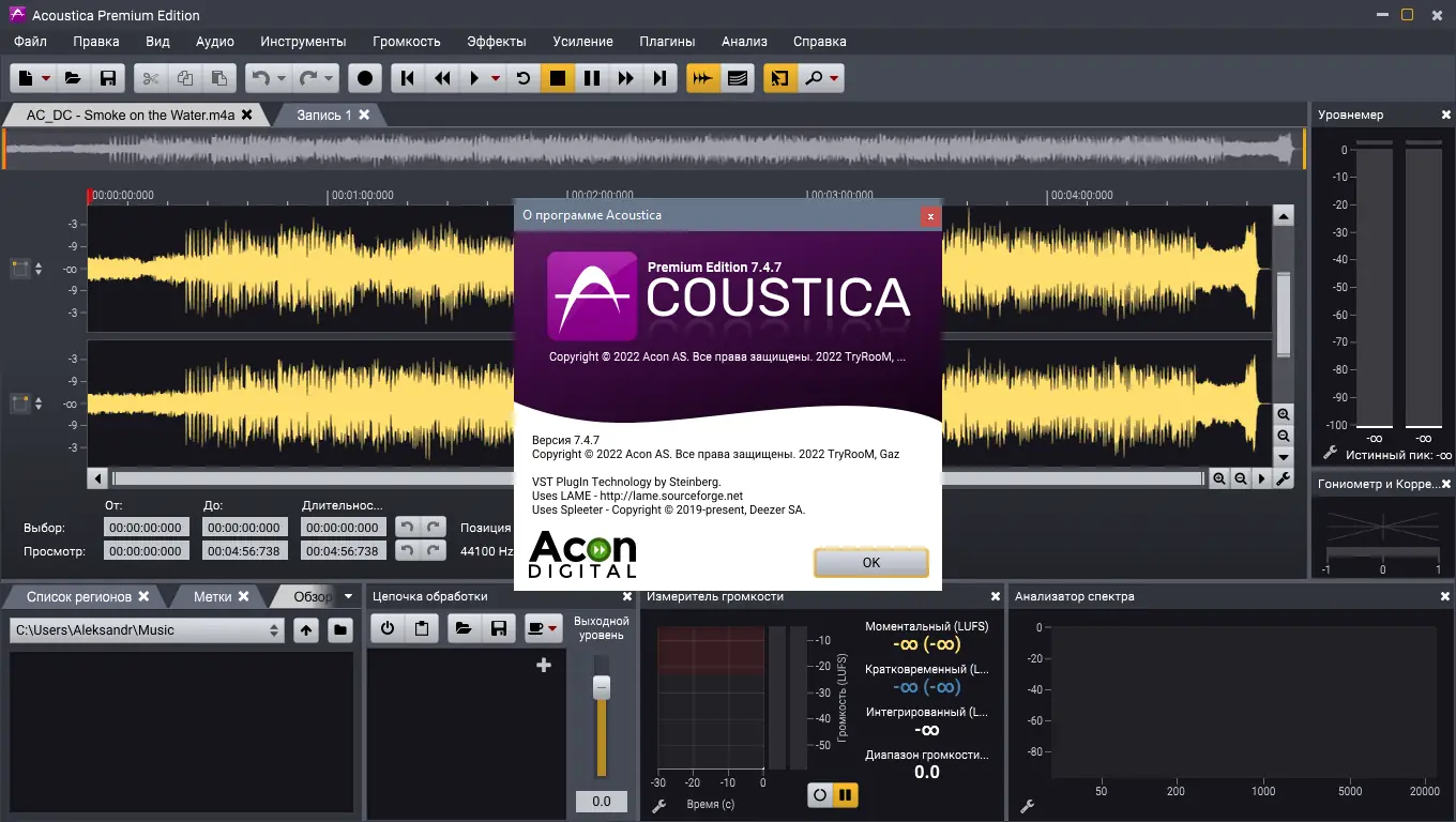 Процесс установки Acoustica максимально прост и подходит как для новичков, так и для опытных пользователей. Важно учитывать, что версия RePack позволяет выбрать разрядность системы и включает необходимые плагины для расширения функциональности.