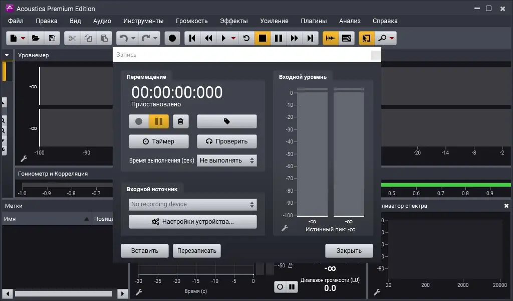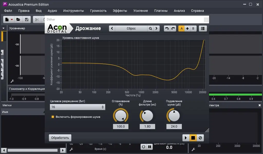 Обратите внимание, что программа не поддерживает русскую локализацию, однако интерфейс настолько интуитивен, что это не создает существенных преград для пользователей. В комплекте предусмотрены стандартные инструменты для вырезания, копирования, вставки и редактирования дорожек. Возможности по работе с метками, анализаторами в реальном времени и встроенными плагинами делают Acoustica отличным выбором для мастеринга и реставрации аудио.