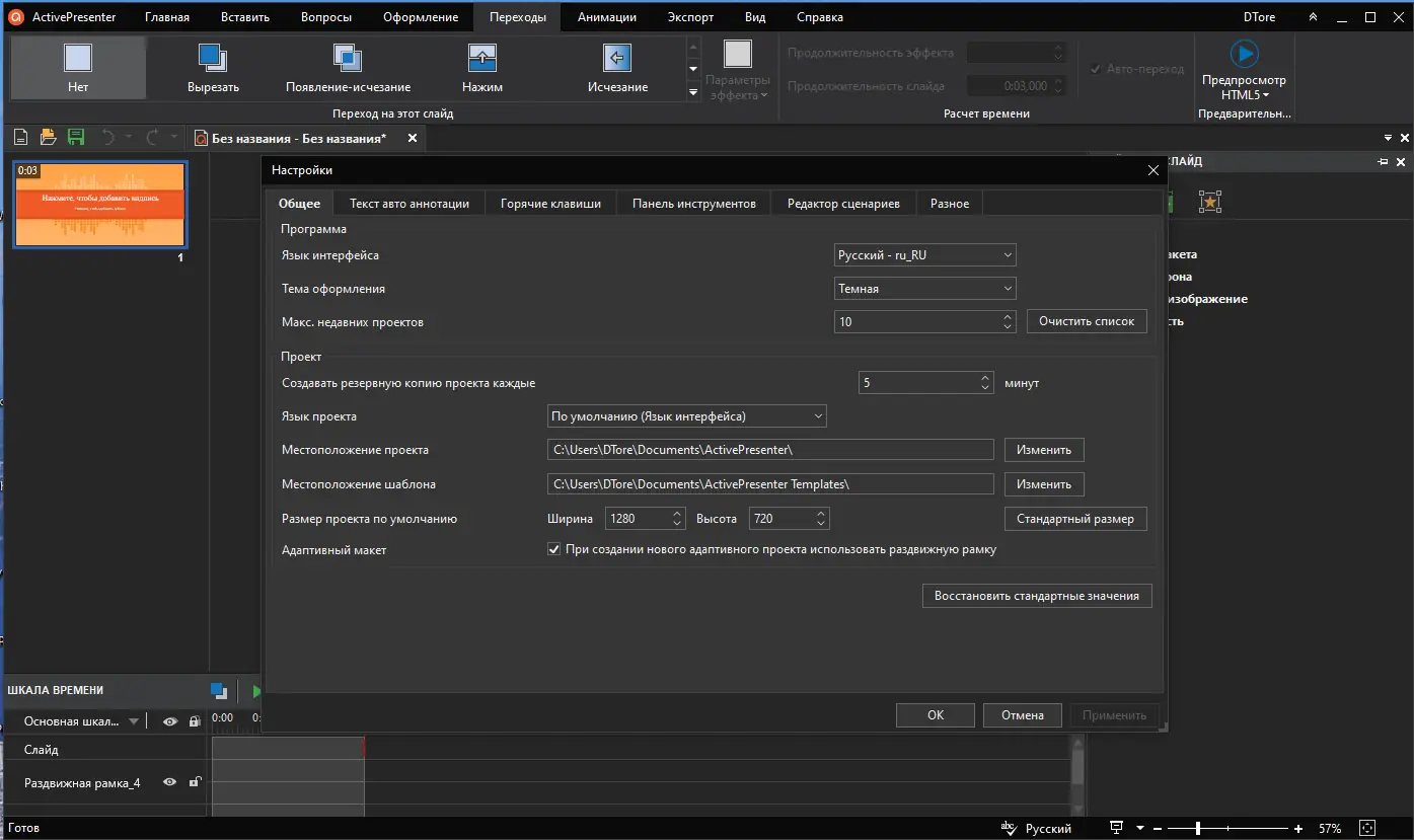 - Поддержка экспорта в разнообразные видео и презентационные форматы.