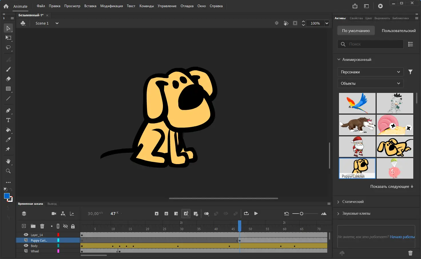 Это современное средство для создания анимации, позволяющее реализовать разнообразные мультимедийные идеи. Программа поддерживает GPU-ускорение, что значительно повышает производительность при работе с графикой, позволяет интегрировать анимации в веб-ресурсы и мобильные приложения. Благодаря интуитивному интерфейсу и обширным возможностям, Adobe Animate стала популярным инструментом у профессионалов и любителей, желающих создавать качественный мультимедийный контент.