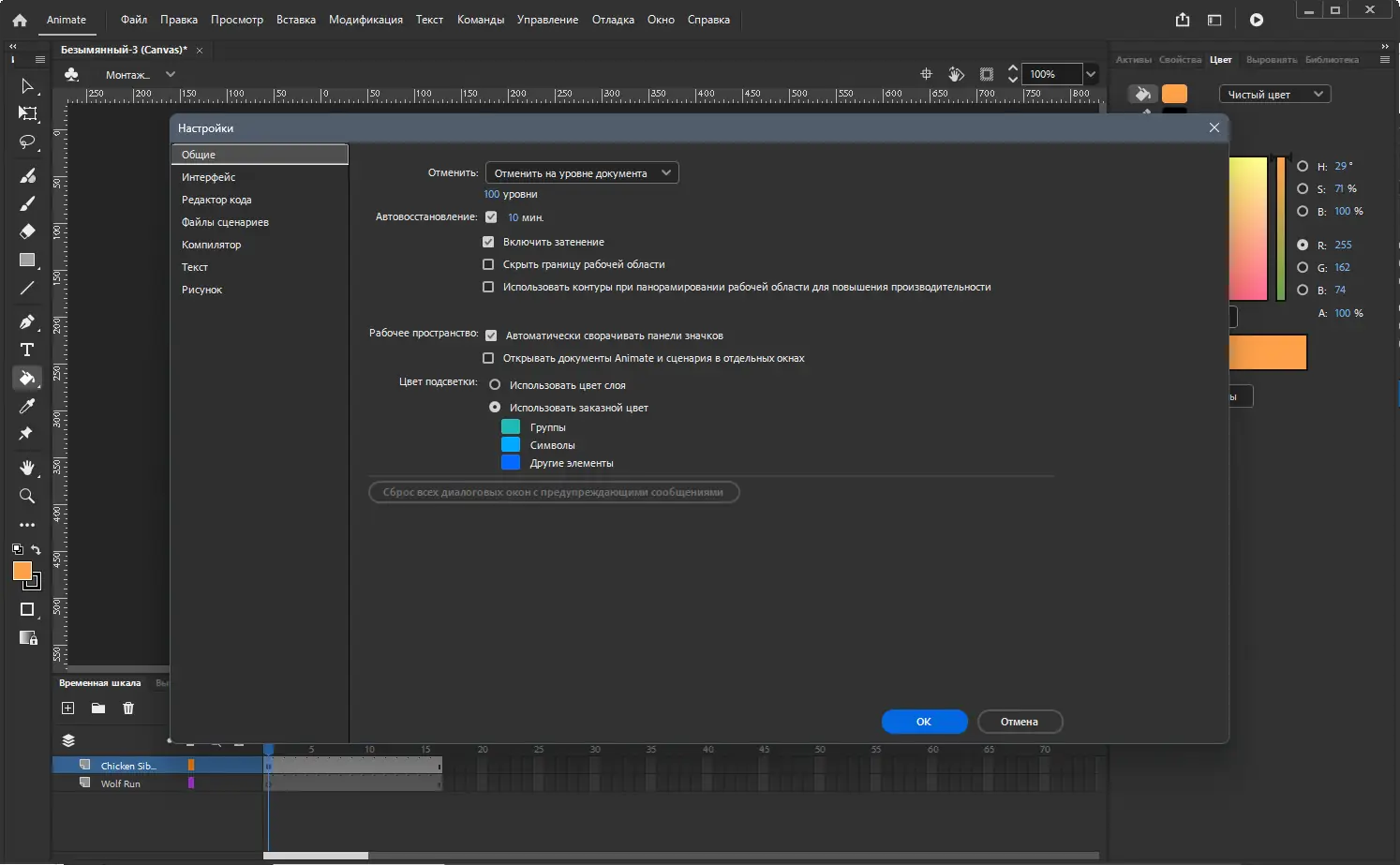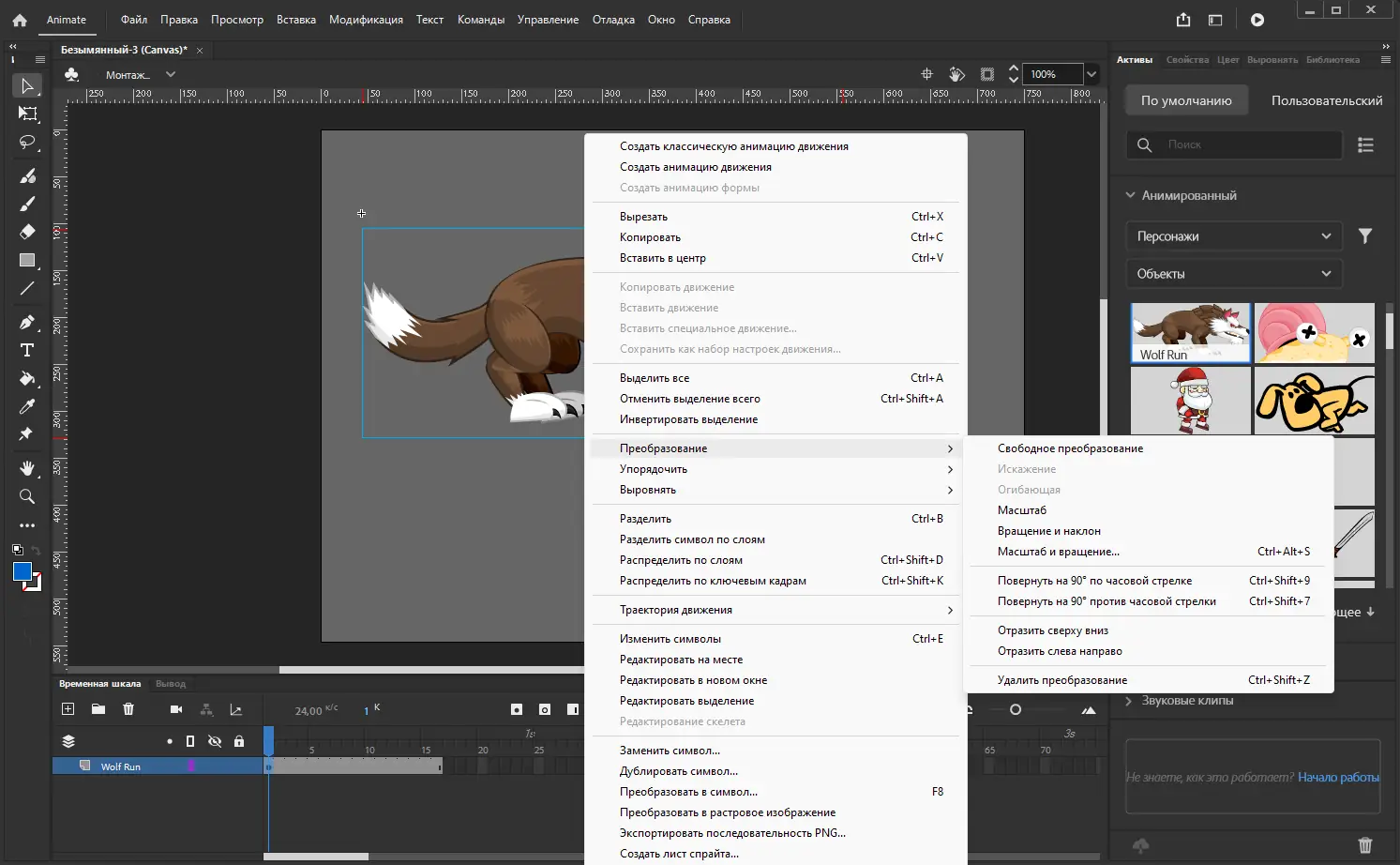- Настройка временной шкалы, включая добавление, удаление параметров и преобразование слоев в символы.