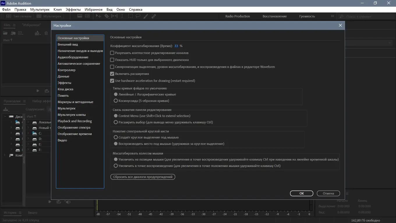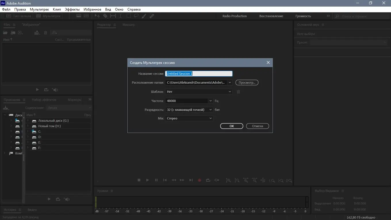 Adobe Audition — мощный инструмент для работы с аудио, объединяющий простоту использования и профессиональные возможности. Он позволяет создавать мастер-копии высокого качества, редактировать, микшировать, накладывать эффекты и восстанавливать звуковые дорожки. Программа подходит для работы с проектами любой сложности и обеспечивает интуитивно понятный интерфейс, что делает её доступной как для новичков, так и для опытных пользователей. Отличительной чертой является поддержка обработки аудиофайлов с глубиной оцифровки до 32-бит и частотой дискретизации свыше 192 КГц, а также возможность записи на любые носители, включая магнитную пленку и DVD.