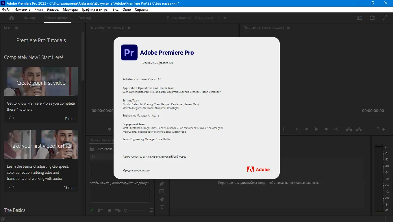 Adobe Premiere 2022 — это мощная программа для профессионального видеомонтажа, поддерживающая редактирование видео разрешения 4K и выше. Она обеспечивает работу с 32-битовым цветом в RGB и YUV пространствах, а также включает инструменты для обработки аудиосегментов, поддержку VST плагинов и звуковых дорожек 5.1 surround. Архитектура Premiere Pro позволяет импортировать и экспортировать материалы в контейнерах QuickTime или DirectShow, а также работает с широким набором видео- и аудиоформатов для платформ MacOS и Windows. Установка требует внимания: на первой странице установщика будет предложено рекламное ПО — обязательно отключайте эту опцию.