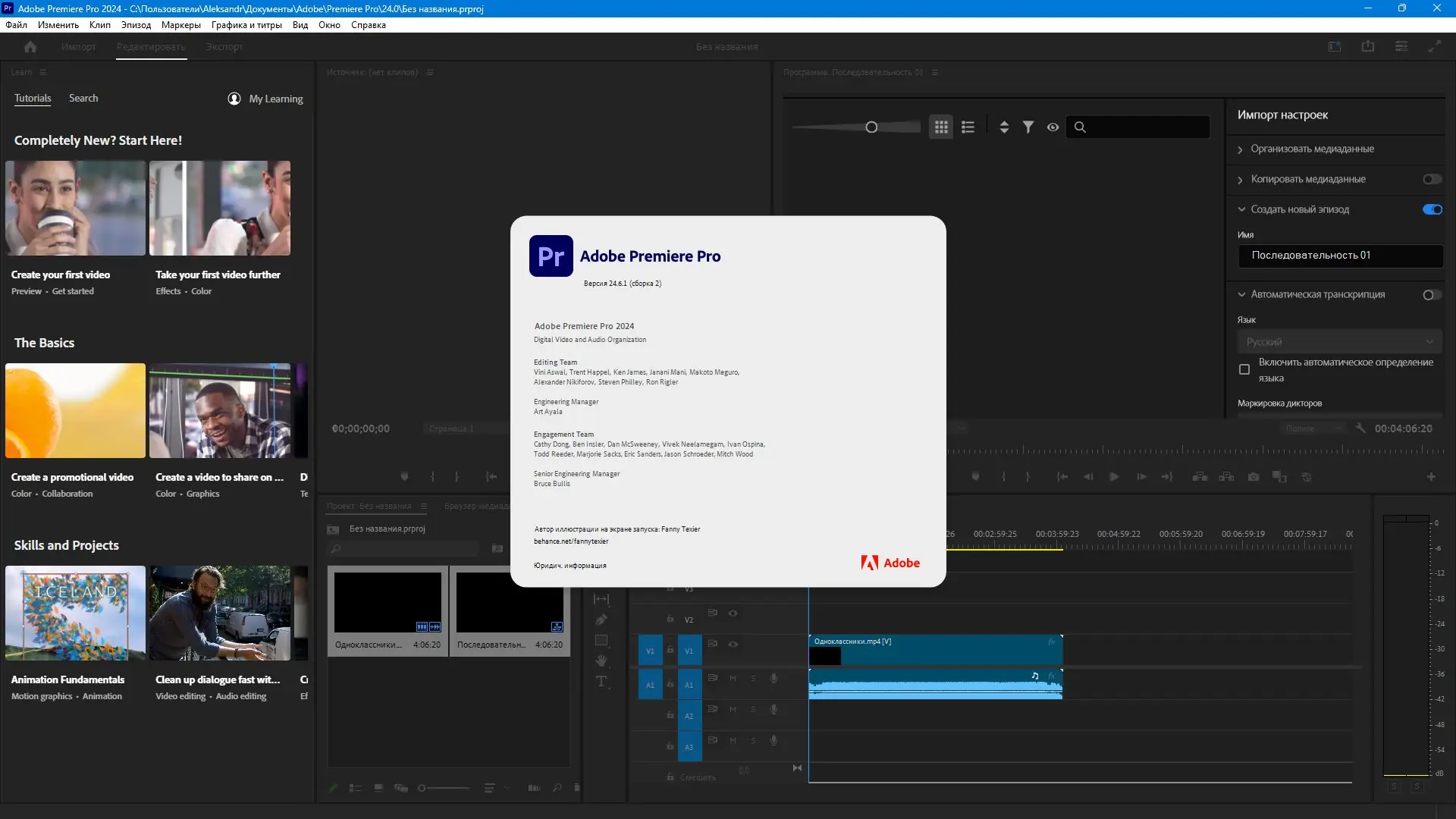 Adobe Premiere Pro 2024 — это мощное приложение для редактирования видео, поддерживающее 32-битное цветовое пространство в RGB и YUV форматах, а также множество форматов видео и аудио файлов, совместимых как с MacOS, так и Windows. Программа обеспечивает профессиональный уровень обработки видео и аудио с возможностью работы с разрешением 4K и выше, автоматическую обработку субтитров, поддержку HDR10, улучшенную работу с цветами через Lumetri Color и интеграцию с другими продуктами Adobe через функцию Dynamic Link. Интуитивный интерфейс, расширенные шаблоны для интерактивного текста и синхронизация шрифтов через Typekit делают работу более эффективной. Благодаря поддержке технологий Apple Metal и современным графическим процессорам, Premiere Pro обеспечивает высокую производительность и быструю обработку материалов, что особенно важно при работе с крупными файлами и сложными проектами.