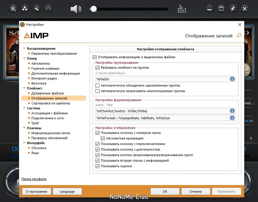 - Настройте язык интерфейса и желаемые параметры программы, выберите тему или загрузите свои обложки