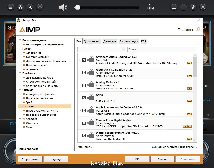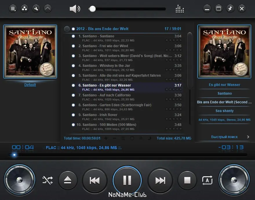 - Поддержка большого количества форматов музыки: MP3, FLAC, OGG, AAC, WAV, WMA, и других современных форматов