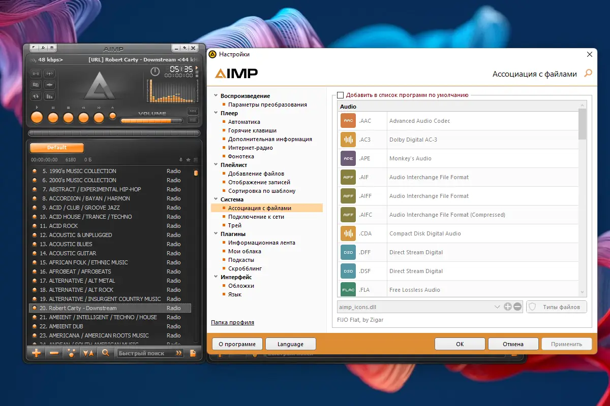 Программа AIMP – современный и мощный аудиоплеер, включающий в себя широкий набор дополнительных модулей и функций. Она поддерживает воспроизведение множества популярных форматов музыки, таких как MP3, WAV, OGG, FLAC, WMA, AAC и многие другие, включая специализированные форматы и файлы разметки (CUE). Стильный многоязычный интерфейс и поддержка экранов с высоким разрешением обеспечивают комфортную работу как на домашних, так и на профессиональных устройствах. Возможность расширения функциональности за счет модулей, интеграция с интернет-радио, богатая настройка интерфейса и звуковых эффектов делают процесс прослушивания максимально удобным и персонализированным.