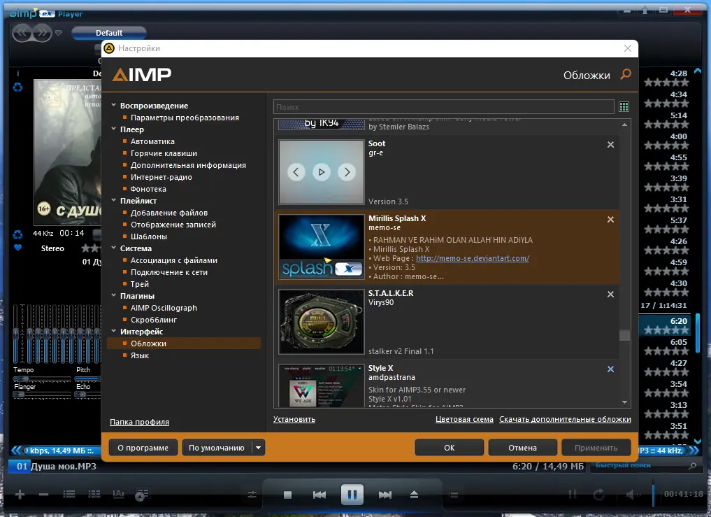 - Поддержка современного интерфейса для дисплеев с высоким разрешением, настройка скин-ов и обложек, а также настройка звуковых эффектов и эквалайзеров.
