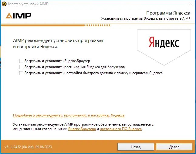 - Запустите установочный файл и в процессе установки снимите галочки с дополнительных компонентов, если не хотите их добавлять.