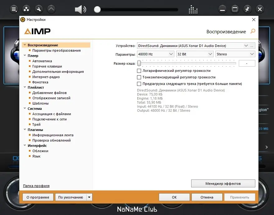 - Вывод звука через DirectSound, ASIO, WASAPI и WASAPI Exclusive с 32-битной обработкой для высокого качества