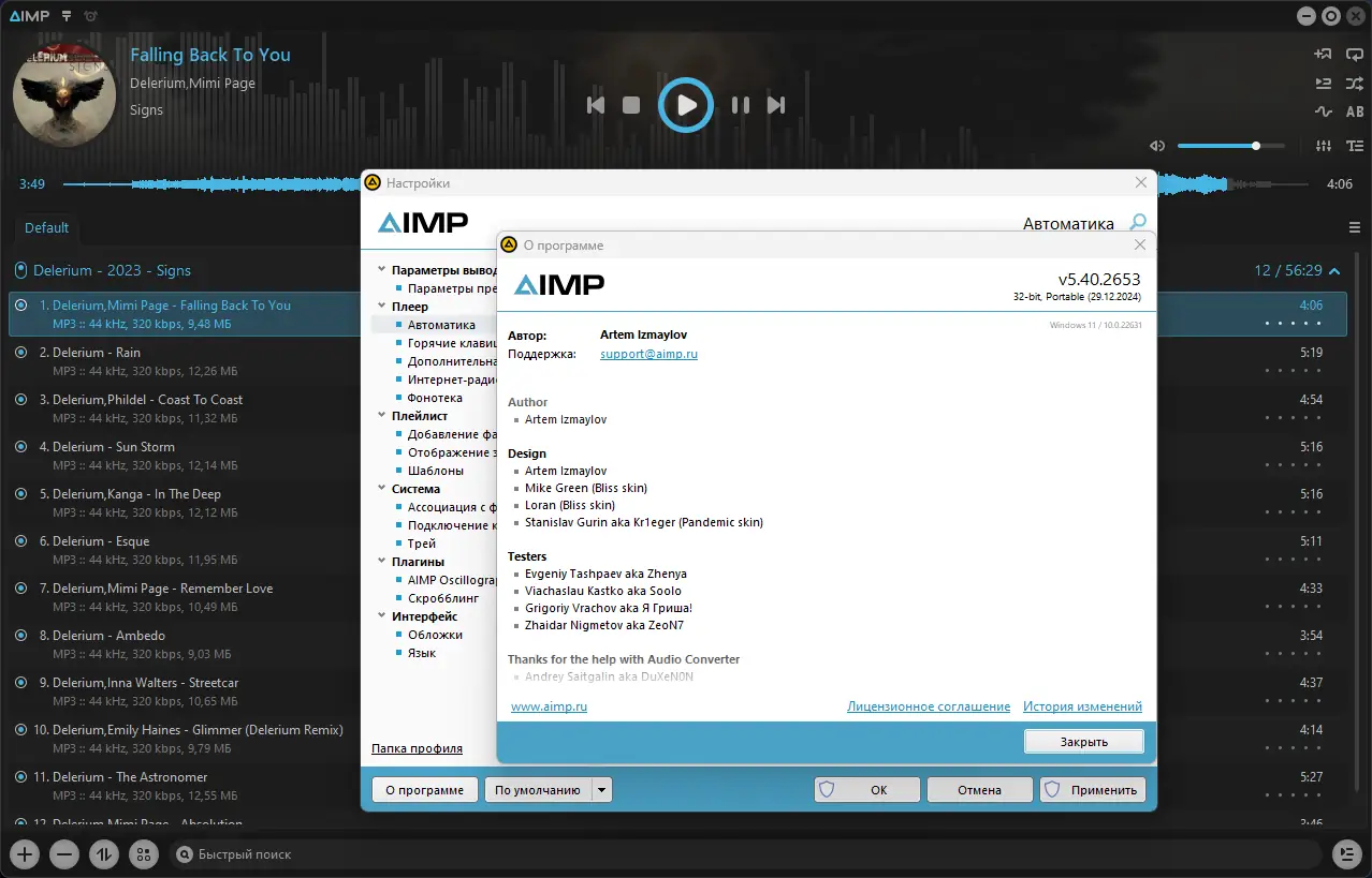 AIMP — мощный проигрыватель, который не ограничивается обычным воспроизведением аудиофайлов. Он включает в себя такие инструменты, как CD-Ripper, Tag Editor, аудиоконвертер, система записи дисков и аудио, а также расширяемый функционал благодаря поддержке модулей и плагинов. Стильный многоязычный интерфейс с поддержкой экранов высокого разрешения обеспечивает комфортное использование на устройствах с любыми характеристиками. Программа способна воспроизводить более 30 популярных аудиоформатов, включая WAV, MP3, OGG, WMA и многие другие, не требуя дополнительных кодеков.