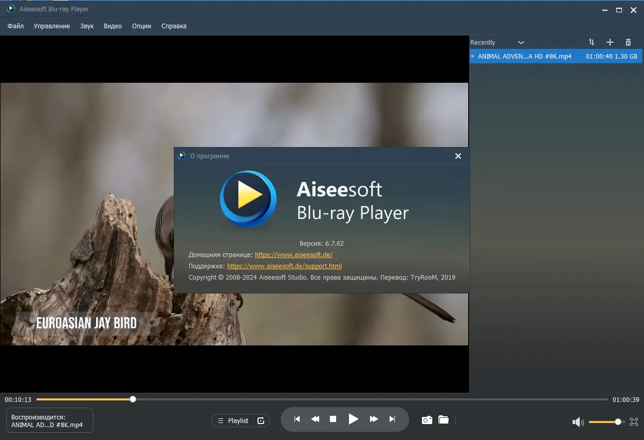 Многофункциональный медиаплеер для воспроизведения Blu-ray дисков и популярных мультимедийных форматов на ПК.