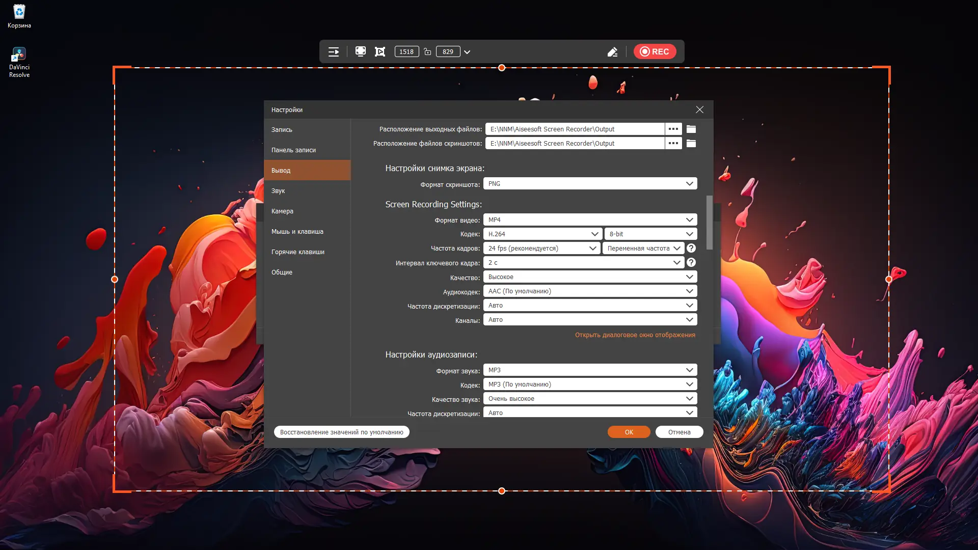 - Запись видео с любого экрана или выбранной области, включая Full HD и другие разрешения.