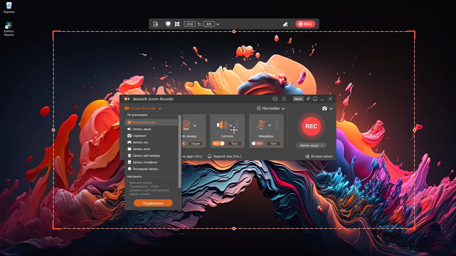- Запись голоса с микрофона и системных звуков для создания профессиональных презентаций и видеоблогов.