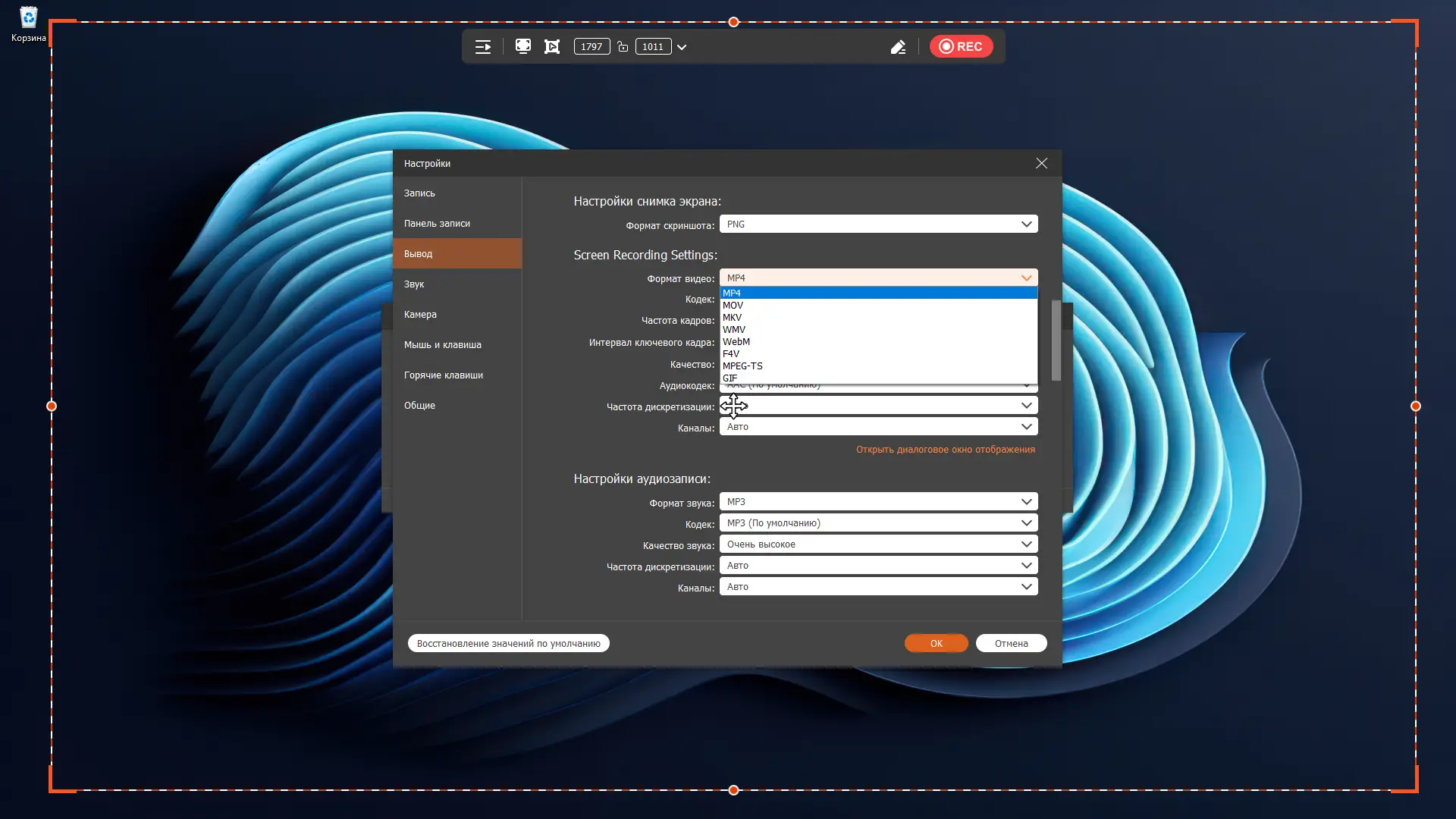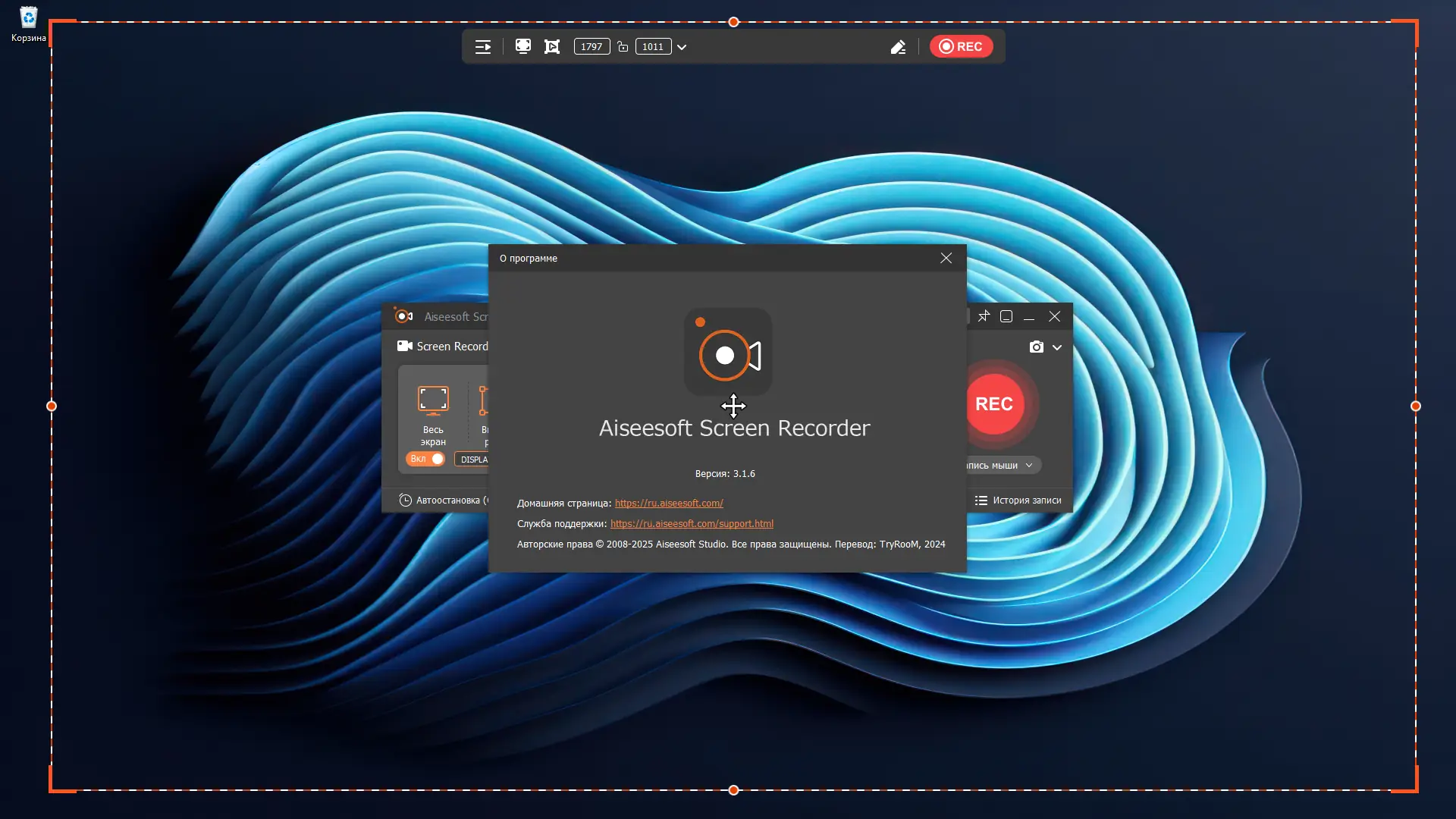 Аудио-видео рекордер с возможностью создания снимков экрана и редактирования записей.