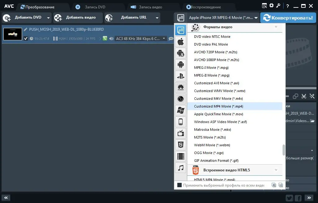 - Конвертация видео для мобильных устройств, таких как iPhone, Samsung Galaxy, Google Nexus, а также приставок PS3, Xbox и BlackBerry.
