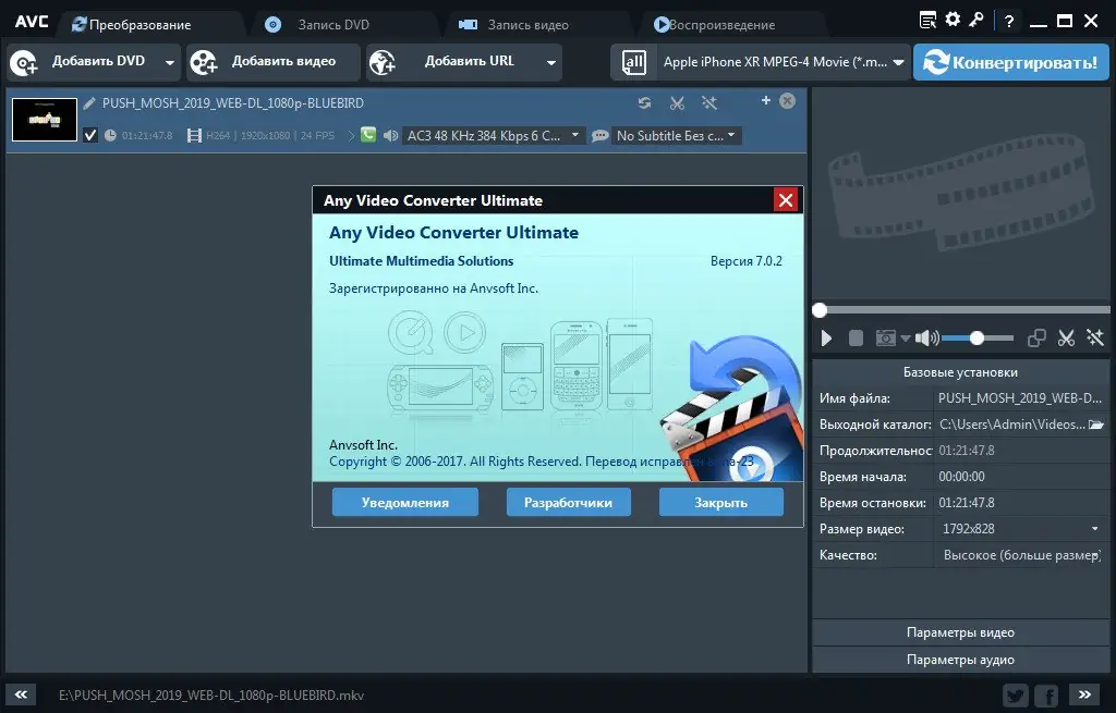 Any Video Converter Ultimate — многофункциональная программа, предназначенная для быстрого и удобного конвертирования видеофайлов между различными форматами. Поддерживаются такие популярные форматы, как MP4, AVI, MOV, MKV, FLV и многие другие, включая HD и 4K видео. Благодаря высокой скорости преобразования и качеству вывода она идеально подходит как для профессиональных задач, так и для личного использования.