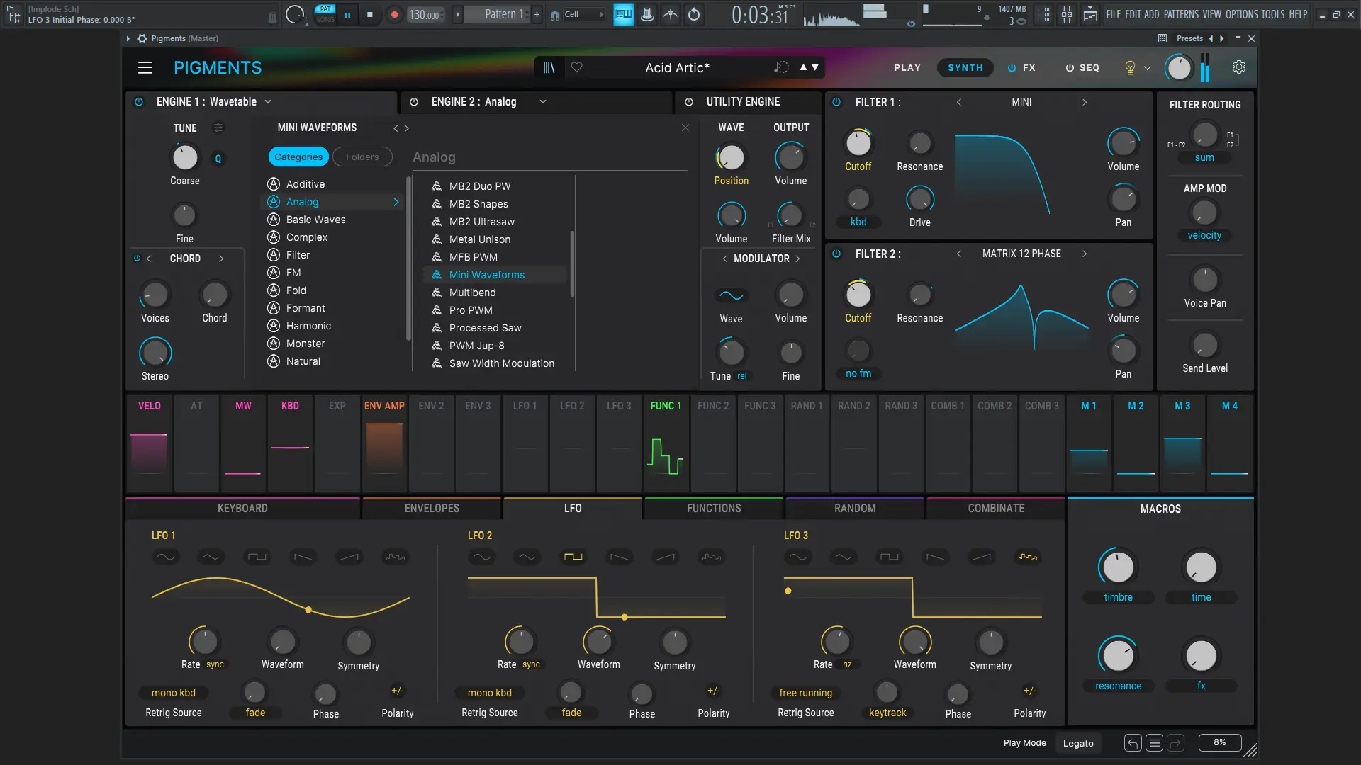 Arturia Pigments — это обновлённая версия популярного VST-синтезатора, которая предлагает значительно расширенные функциональные возможности и улучшенный интерфейс. Новая версия включает современный движок синтеза, три дополнительных фильтра, расширенные модуляции и эффекты. Инструмент позволяет создавать широкий спектр звуков — от нежных струнных до насыщенных пэдов и эффектных текстур. Благодаря модальному движку, генерирующему вдохновлённые реальными звуками сигналы, синтезатор обеспечивает богатую вариативность звучания, идеально подходящую для профессиональной работы в студии и на сцене.