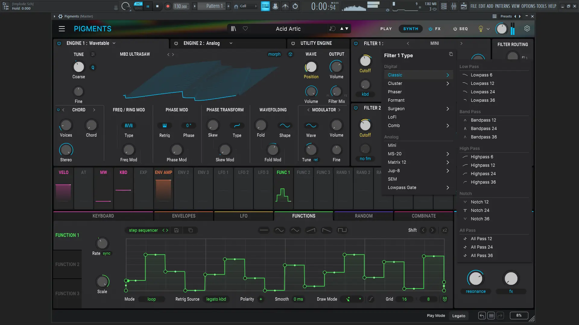 - Расширенные параметры модуляции с индивидуальной настройкой для каждого голоса и новым модулем Function V2;