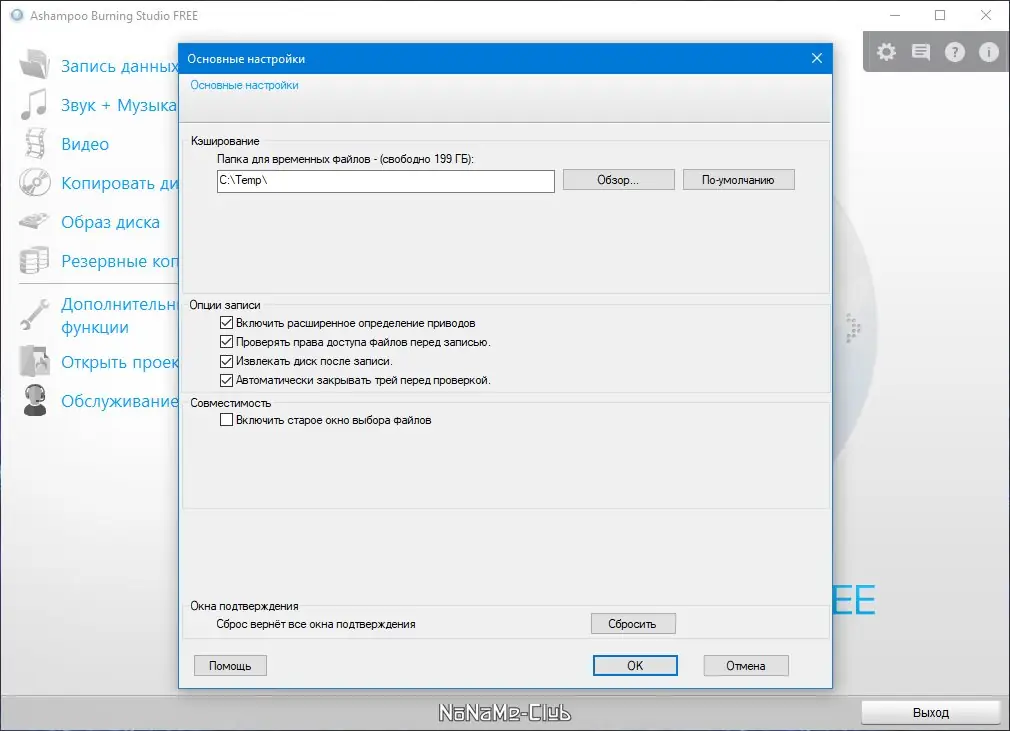Это всего лишь часть функционала: создание образов дисков, резервное копирование, подготовка и печать обложек, быстрое стирание перезаписываемых дисков, а также автоматическая настройка и сохранение параметров проектов.