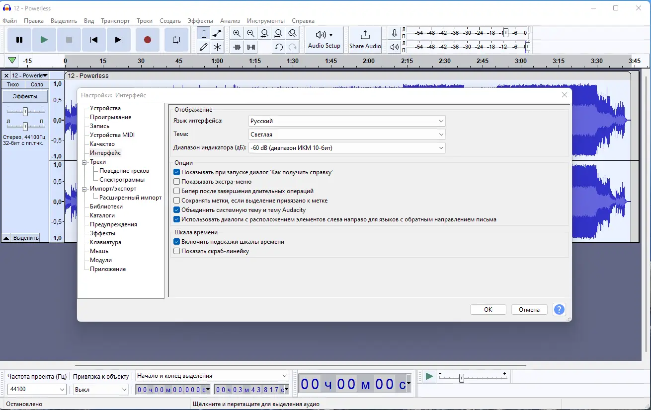 - Использование различных эффектов: изменение высоты тона, скорости, удаление шума, эквалайзер, динамическая обработка и другие.