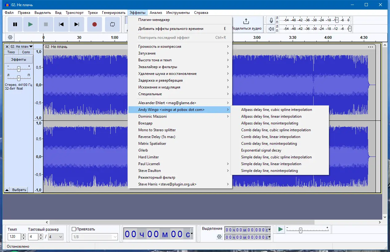 - Использование дополнительных модулей VST, LADSPA и создание собственных эффектов.