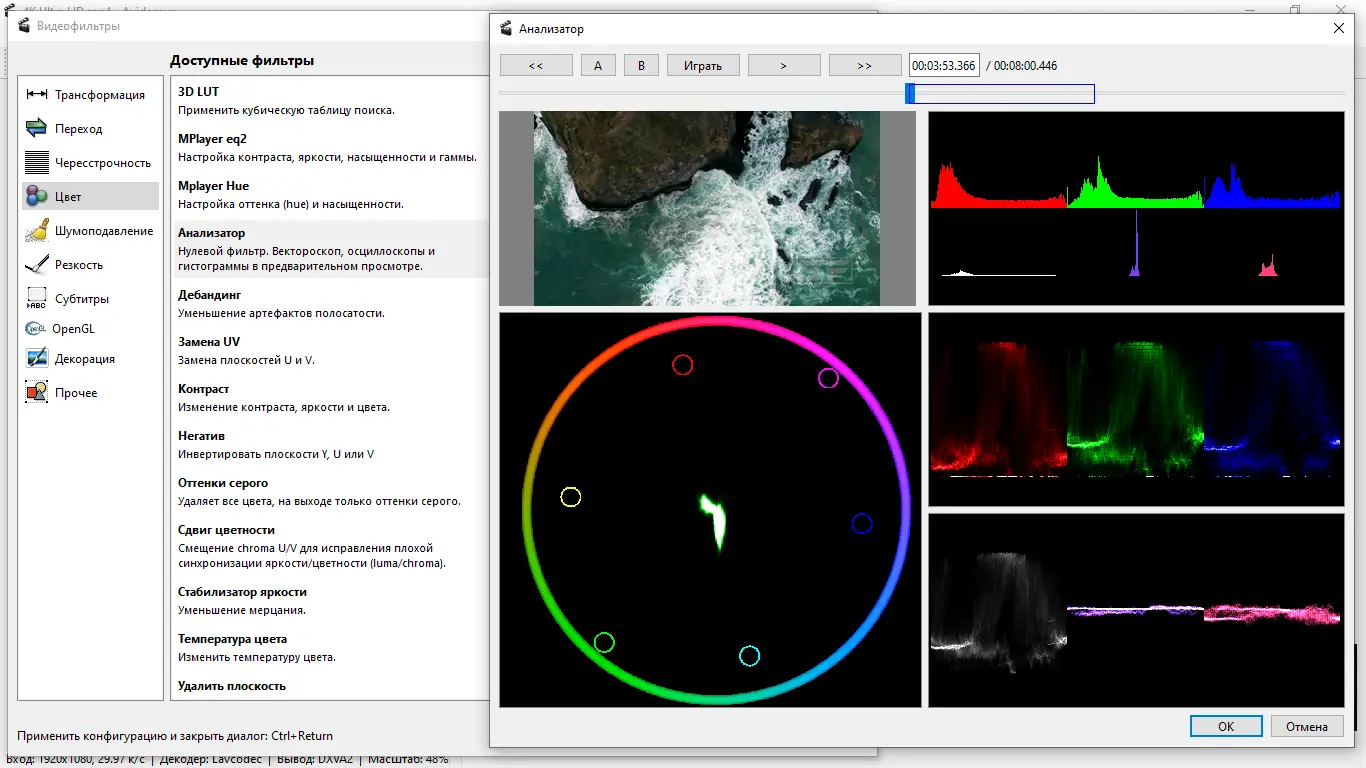 Бесплатный редактор видео с открытым исходным кодом, предназначенный для простых операций по монтажу, фильтрации и кодированию роликов с поддержкой множества форматов и codecs.