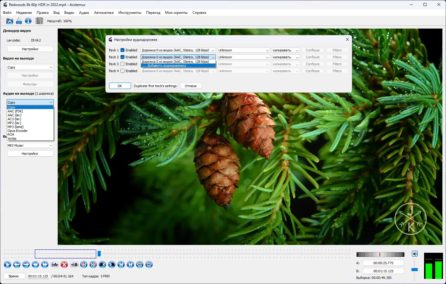 - Импорт и экспорт аудио потоков, а также управление субтитрами.