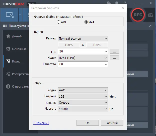 - Запись видеороликов в формате AVI и MP4 с поддержкой DirectX и OpenGL
