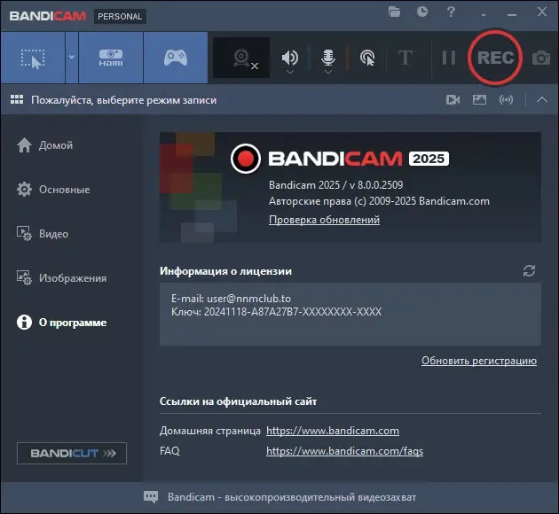 Bandicam — это мощный инструмент для захвата видео со встроенной возможностью записи всей области экрана или её отдельной части. Программа отлично подходит для записи игр, использующих графические технологии DirectX, OpenGL и Vulkan, обеспечивая видео высокого разрешения до 4K UHD с высоким коэффициентом сжатия. Также возможна запись с внешних устройств, таких как веб-камеры, игровые приставки или смартфоны. Благодаря разнообразию функций, она идеально подходит как для профессиональной создания контента, так и для простого захвата экрана на ПК.