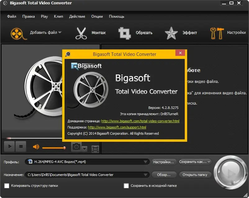 Bigasoft Total Video Converter — это универсальное решение для работы с медиафайлами, обеспечивающее конвертацию практически любых видео и аудио форматов. Благодаря богатому набору функций и поддержке свыше 40 видео и аудио форматов, программа позволяет легко преобразовывать файлы между различными форматами, такими как AVI, MP4, MKV, WMV, MOV, FLV, 3GP, WebM и многие другие. Встроенный быстрый алгоритм обеспечивает высокую скорость обработки без потери качества. Помимо этого, продукт способен извлекать аудио из видеороликов, а также редактировать файлы — разбивать их на части или удалять черные полосы. Программа идеально подходит для подготовки контента для мобильных устройств (IPod, iPhone, BlackBerry, PSP, Xbox и др.), а также для загрузки видео на платформы, поддерживающие формат WebM/VP8.