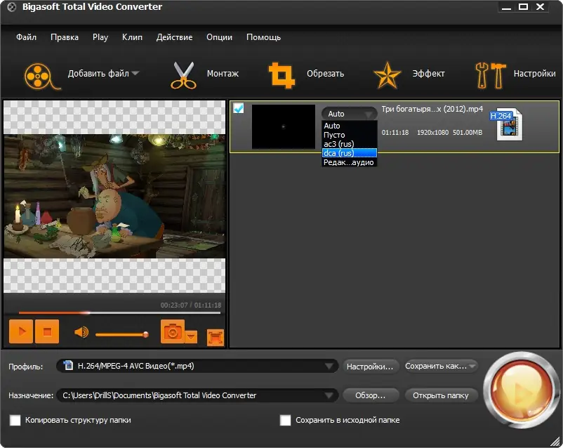 Так как программа поддерживает конвертацию различных форматов, убедитесь, что выбран правильный профиль для вашего устройства и мультимедийных целей.