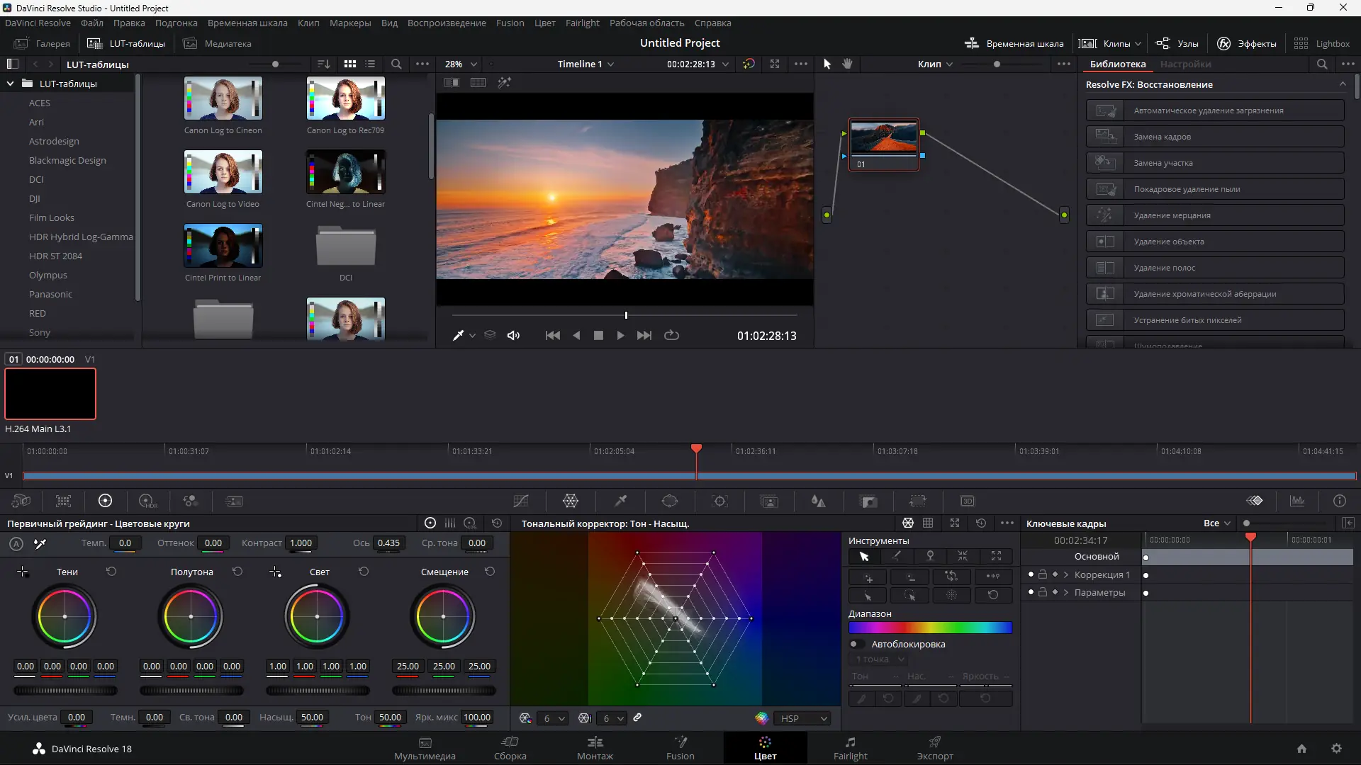 - Инновационный модуль цветокоррекции с расширенными средствами для работы в HDR, маскированием и отслеживанием, а также автоматическими функциями с использованием искусственного интеллекта.