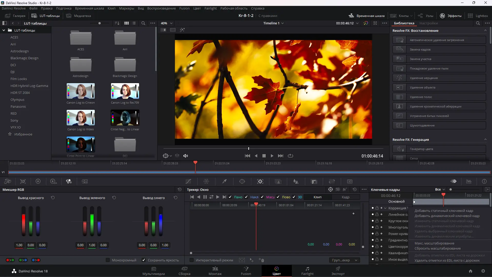 - Объединение функций монтажа, цветокоррекции, VFX и звука в единой программе