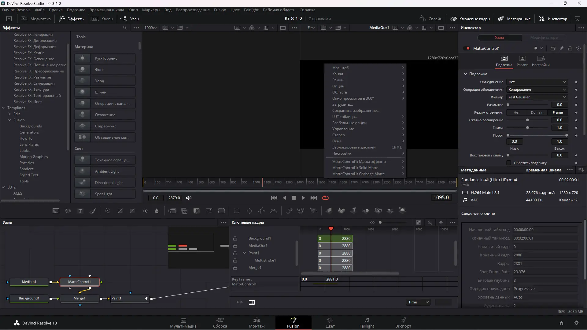 - Создание и интеграция визуальных эффектов, графики и 3D-композиций во Fusion